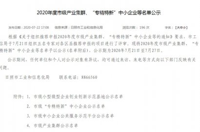 根據(jù)《關(guān)于組織推薦申報(bào)2020年度市級(jí)產(chǎn)業(yè)集群、“專精特新”中小企業(yè)等的通知》要求,市工信局組織專家對(duì)各區(qū)縣推薦申報(bào)的項(xiàng)目進(jìn)行了評(píng)審。我公司通過2020年度市級(jí)“專精特新”中小企業(yè)評(píng)審。